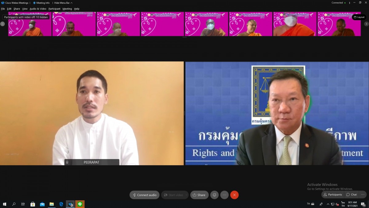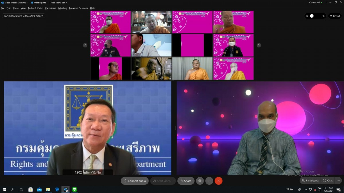 วันศุกร์ที่ 17 กันยายน 2564 ดร.โฆสิต สุนิจวิจิต คณะที่ปรึกษารัฐมนตรีว่าการกระทรวงยุติธรรม ในฐานะ ประธานคณะกรรมการยุทธศาสตร์พัฒนาและบูรณาการเครือข่ายภาคประชาชน กระทรวงยุติธรรม เป็นประธานในพิธีเปิดหลักสูตรอบรมการไกล่เกลี่ยข้อพิพาท ตามพระราชบัญญัติการไกล่เกลี่ยข้อพิพาท พ.ศ. 2562 (รุ่นที่ 28) ด้วยวิธีการเรียนการสอนแบบ Online ผ่านทางระบบ Cisco Webex Meetings โดย ดร.ธปภัค บูรณะสิงห์ ผู้อำนวยการกองส่งเสริมการระงับข้อพิพาท มอบหมายให้ นายพีรภัทร บุญรอด นักวิชาการยุติธรรมชำนาญการพิเศษ กล่าวรายงาน ซึ่งมี เจ้าคณะแขวง เลขาเจ้าคณะแขวง และเจ้าหน้าที่จากกรมพระธรรมนูญ ในพื้นที่กรุงเทพมหานคร จำนวน 51 รูป/คน เข้าร่วม