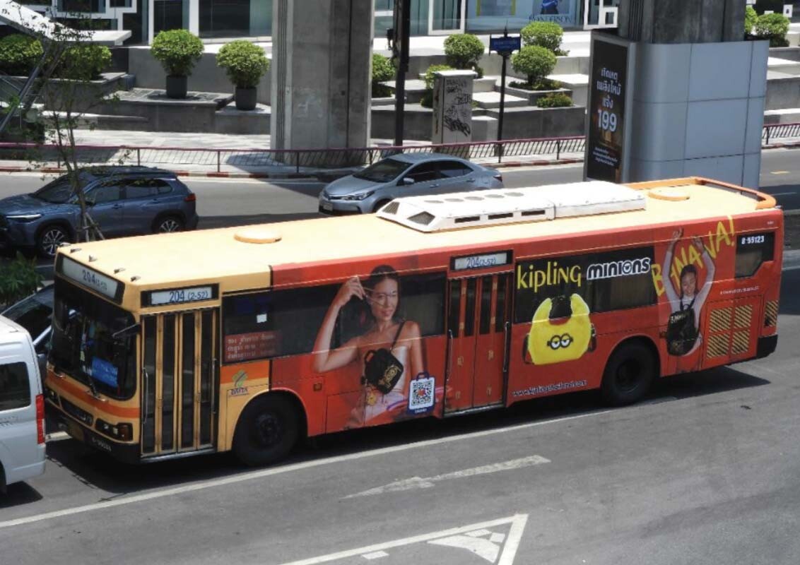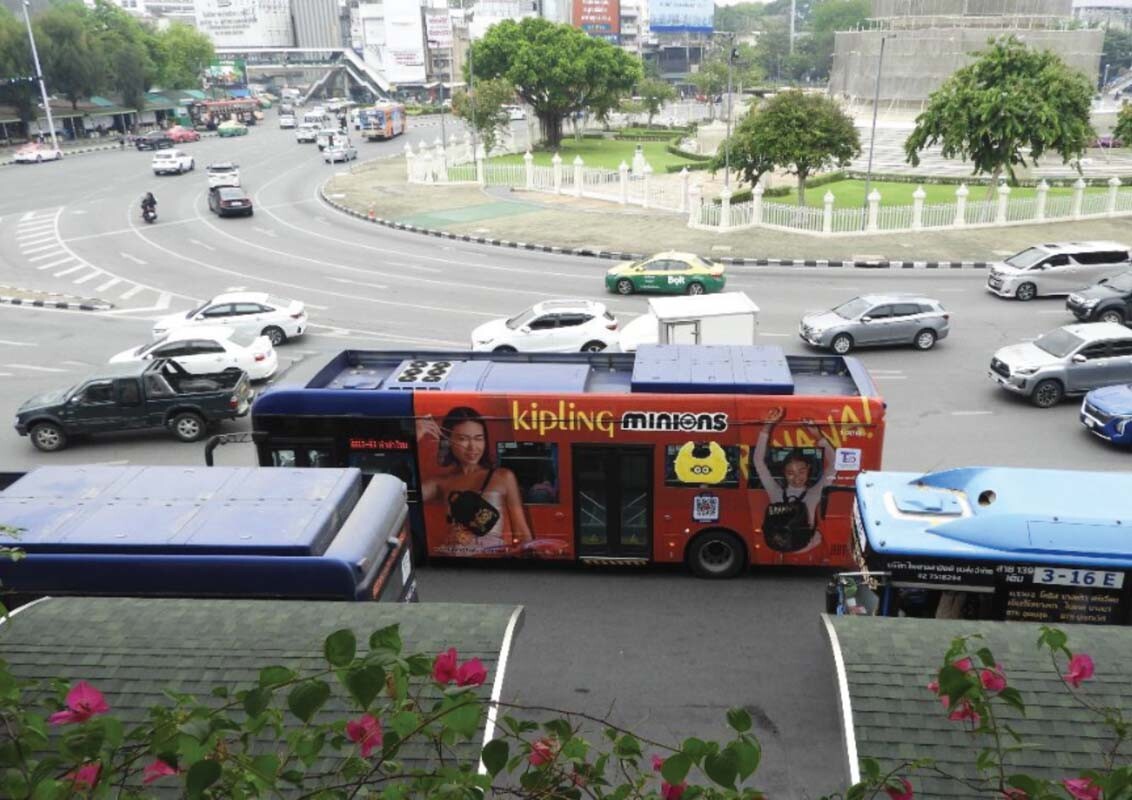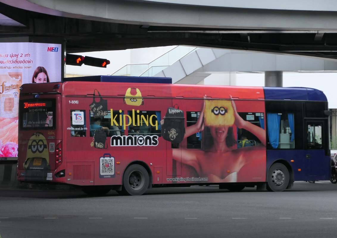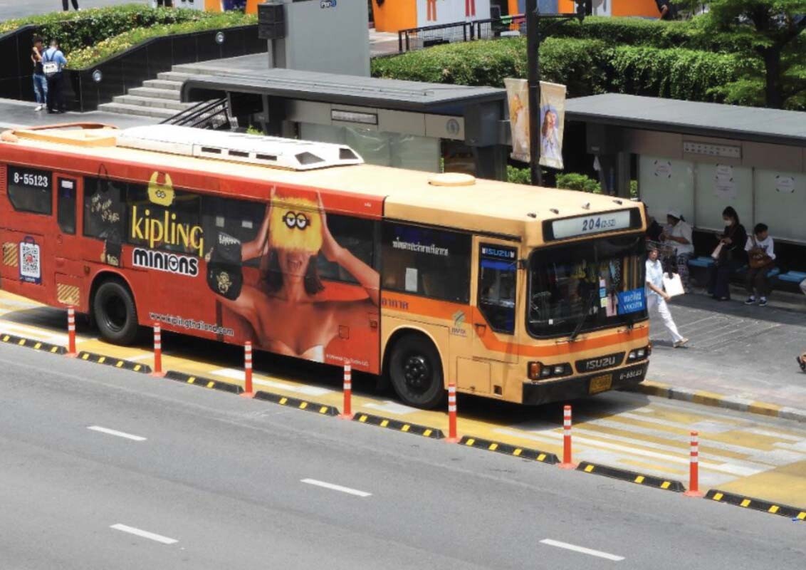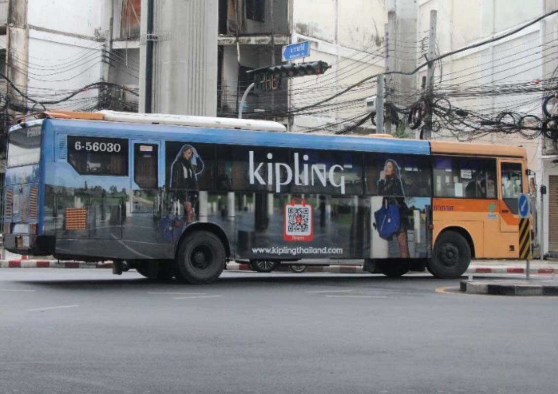 ในปีนี้ คุณปอได้เหมาโฆษณาบนขบวนรถปรับอากาศ ทั้ง 5 สาย สายที่ 1 ศูนย์ราชการฯ แจ้งวัฒนะ ไปคลองหลวง, สายที่ 2 สถานีขนส่งผู้โดยสารกรุงเทพฯ (ถนนมรมราชชนนี) ไปสถานีขนส่งผู้โดยสารกรุงเทพฯ (เอกมัย), สายที่ 3 สถานีรถไฟาศาลายา ไปสถานีรถไฟฟ้าสนามกีฬาแห่งชาติ, สายที่ 4 อู่พุทธมณฑลสาย 2 ไปราชประสงค์ และ สายที่ 5 ตลาดห้วยขวาง ไปท่าน้ำราชวงศ์ เพื่อให้เข้าถึงลูกค้าทั่วทั้งกรุงเทพและปริมณฑล โดยในหนึ่งวัน ทุก ๆ คันจะวิ่ง 3 รอบ เป็นการโปรโมทคอลเลคชั่น Minions และคอลเลคชั่น Heritage ทั้งยังเพิ่มสีสัน ความสดใสและลดความตึงเครียดในการจราจรช่วงชั่วโมงเร่งด่วน ซึ่งสร้างความคึกคักให้กับแบรนด์อย่างมากในโลกออนไลน์ เนื่องจากผู้สัญจรได้ถ่ายรูปและแชร์ให้เพื่อนๆได้เห็นในยามเช้าและยามเย็น… สำหรับใครที่สนใจ Kipling คอลเลคชั่นใหม่ ทั้ง Minions และ Heritage สามารถซื้อได้แล้วที่ Kipling ทุกสาขาและทุกช่องทางออนไลน์ www.Kiplingthailand.com ซึ่งจะมีทีมงานเตรียมพร้อมที่จะคอยตอบคำถามให้ข้อมูลของสินค้าด้วยความรวดเร็วและใส่ใจอย่างเป็นที่สุด